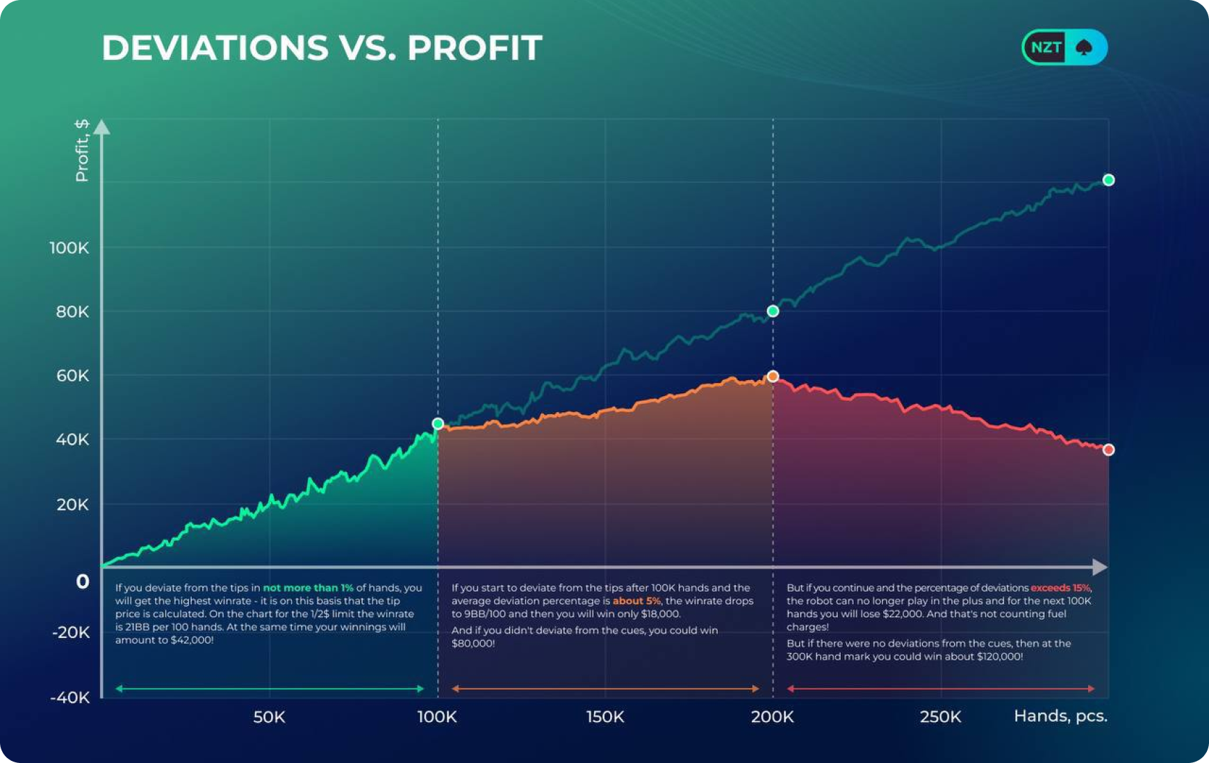 对于职业玩家,NZT是一款改变游戏规则的扑克AI助手。它通过人工智能技术提供实时分析和精准建议,帮助你优化决策。NZT作为你的扑克辅助 和扑克提示器,分析对手行为;作为你的扑克帮手 和扑克教练,指导你制定策略。NZT支持多桌游戏,让你同时参与7个桌子,最大化收益。NZT能够分析对手的下注模式、选择最佳桌子和位置,甚至在高压场景(如决赛桌)提供策略建议。职业玩家可以通过NZT减少长时间计算和分析的压力,专注于赚钱。我们的统计数据显示,使用NZT的职业玩家平均胜率可达10bb/100手牌,远超行业平均水平。此外,NZT提供稳定的运行环境,确保多桌操作不会影响性能。NZT还提供100%安全保障,确保你的账户和数据安全无忧。立即体验NZT扑克助手, 提升你的职业水平!